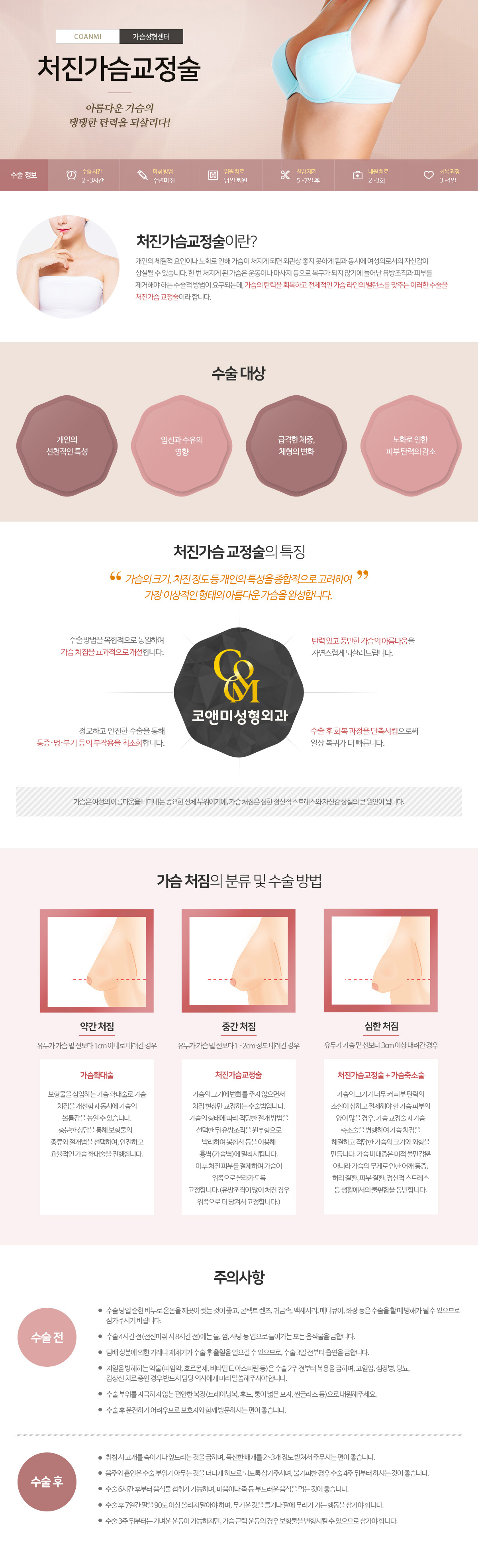 가슴 처짐의 분류 및 수술 방법