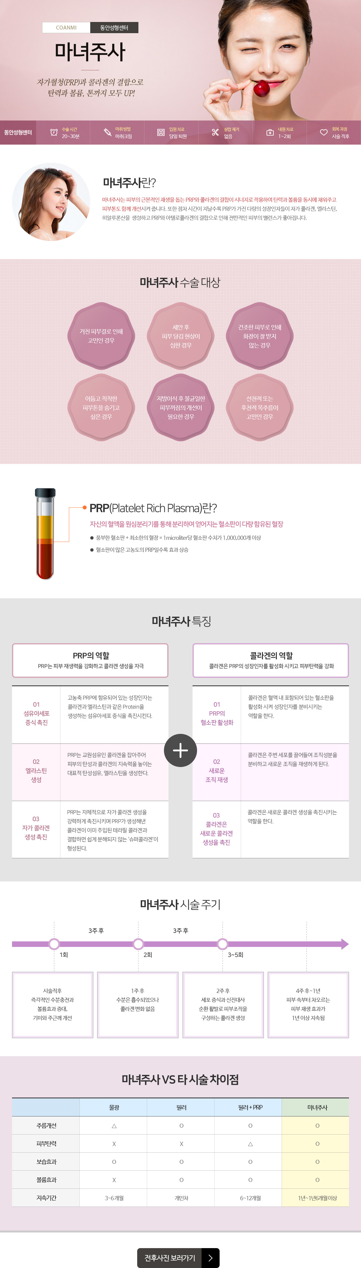 자가혈청(PRP)과 콜라겜의 결합으로 탄력과 볼륨, 톤까지 모두 UP!